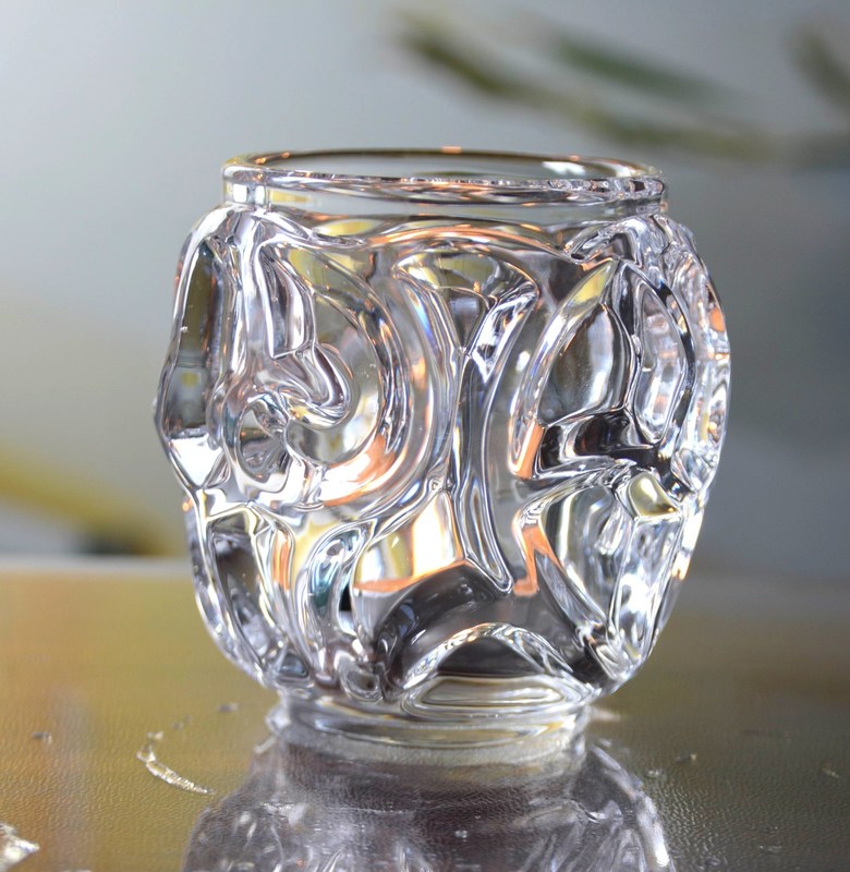 Heavy Duty Unique Ribbed Crystal Votive Glass Candle Holders For Tea Light